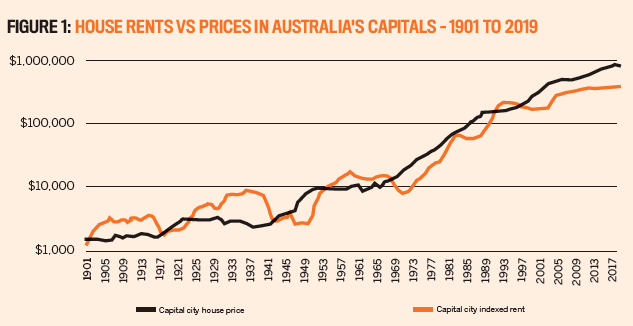 Figure 1 also clearly indicates that prices rose in our capital cities when rents stagnated, such as during the years immediately after each World War (1918–1920 and 1946–1950), when returning soldiers were given affordable War Service Home Loans to buy properties and start families.