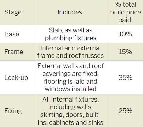 As a guide, Consumer Affairs Victoria says building phases follow this outline: