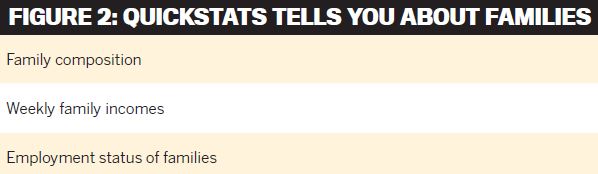 If you want to know more about the types of families who reside in the area, QuickStats shows you, as Figure 2 indicates.