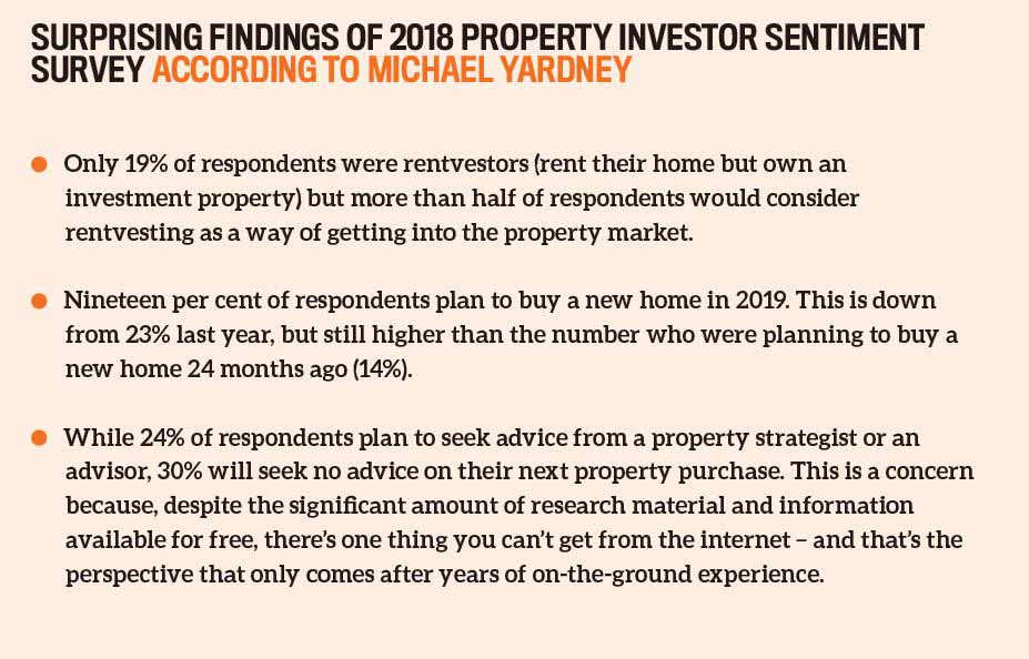 Will 2019 be the year for investors? Despite factors like falling property prices, many seem to think so, according to the results of the 2018 Property Investor Sentiment Survey conducted jointly by Michael Yardney’s Property Update, Your Investment Property and On The House.