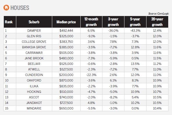 The property market out west has slumped over the last few years, but certain suburbs throughout WA have proven to perform well over the long term