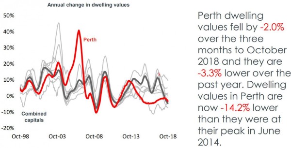 The Perth property market has been on a downward trajectory since peaking in June 2014.