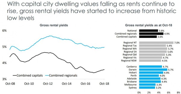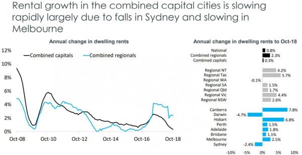 On the other hand regional rental markets have seen weekly rents rise 2.7% over the year.
