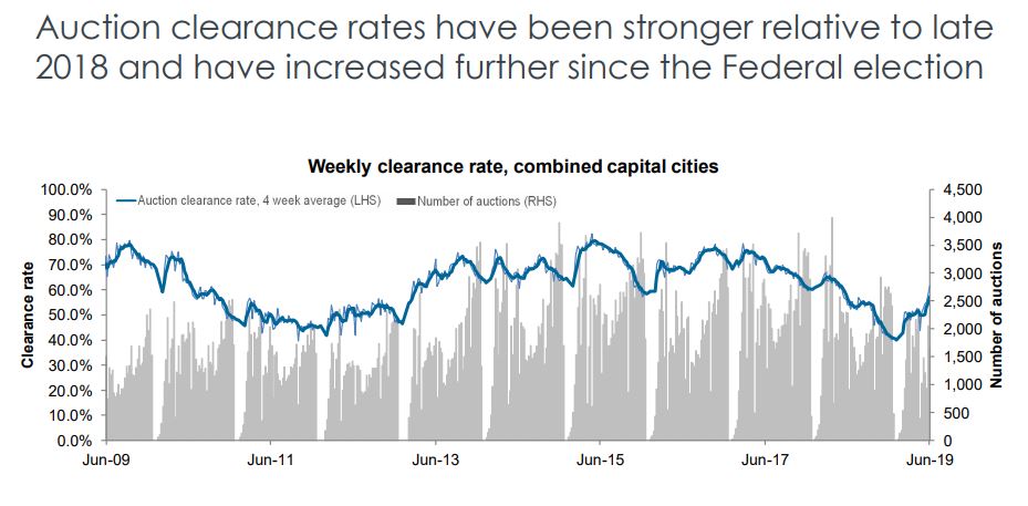 Auction clearance rates in Sydney have been rising into the high 60% range, albeit on lower volumes.