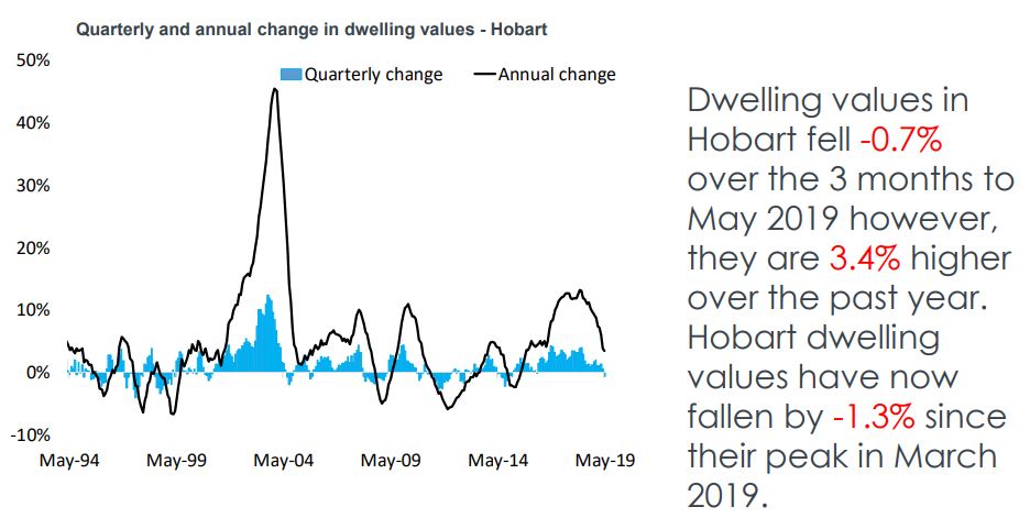 Hobart has been the best performing property market in the last three years, but it looks like the boom is now over with prices peaking in March this year.