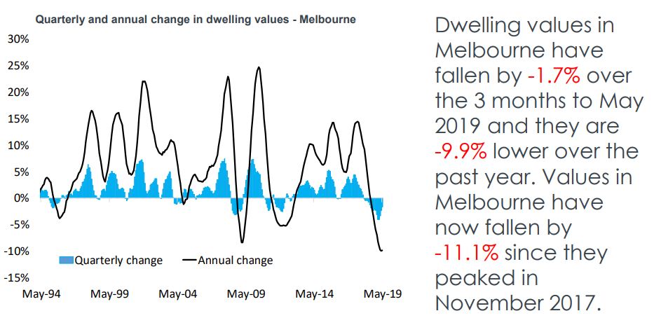 Melbourne dwelling values continued to trend lower in May, down 0.3% over the month to be 11.1% lower since peaking in November 2017, but according to Corelogic Melbourne dwelling values remain 25% higher than they were five years ago.