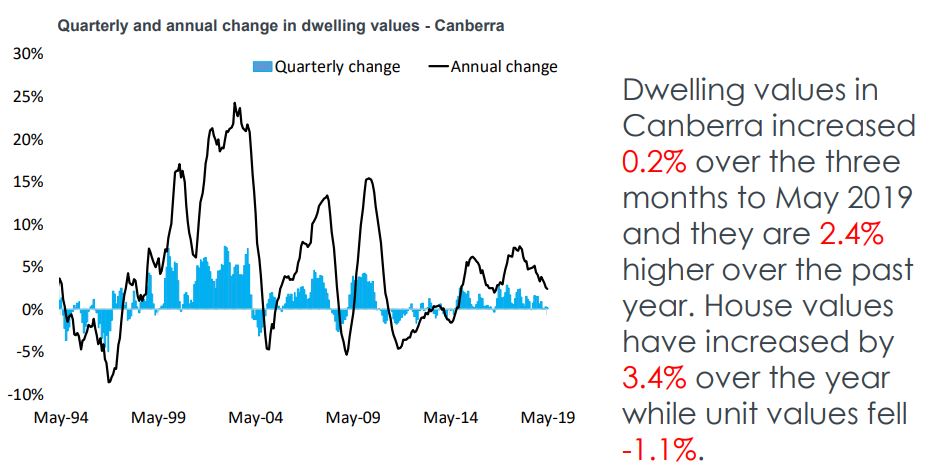 Canberra’s property market is a “quiet achiever” with dwelling values having grown 2.4% over the last year with house price growth (+3.4%) much stronger than the apartment market where prices fell – 1.1% over the last 12 months.