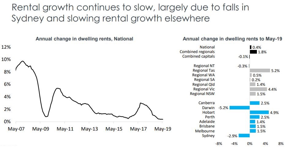 Corleogic reports that national rents were unchanged over the month and 0.4% higher over the past year which remains their slowest annual rate of growth on record (data from 2005).
