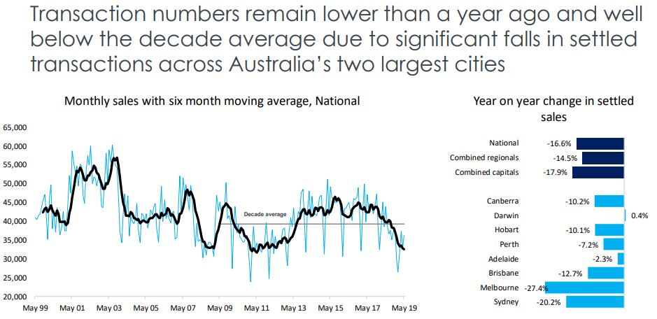 Corelogic report the number of property transactions is down 16.6% nationally year on year, Darwin was the only city in which sales volumes rose over the year.