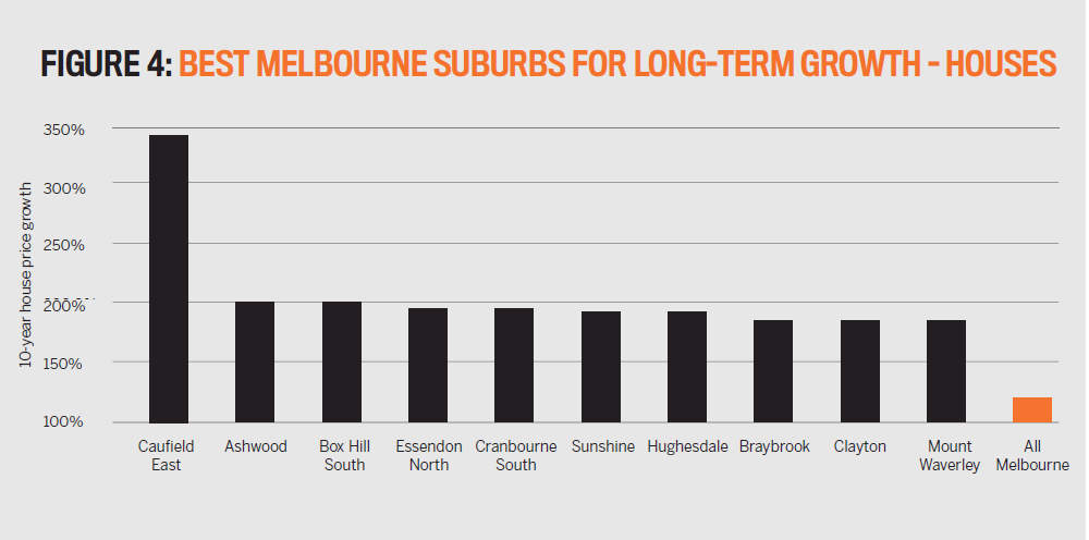 This phenomenon is not unique to Sydney. Figure 4 shows the best long-term house price performers in Melbourne over the last 10 years compared to Melbourne as whole.