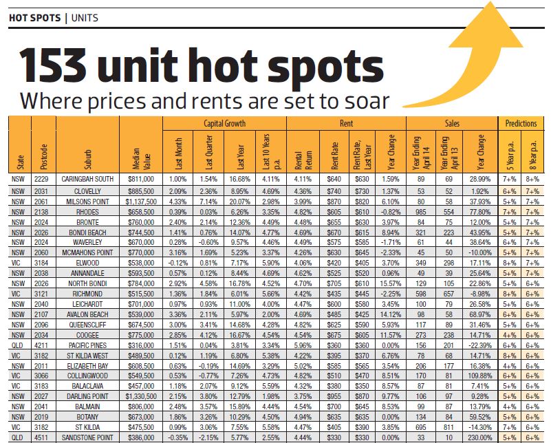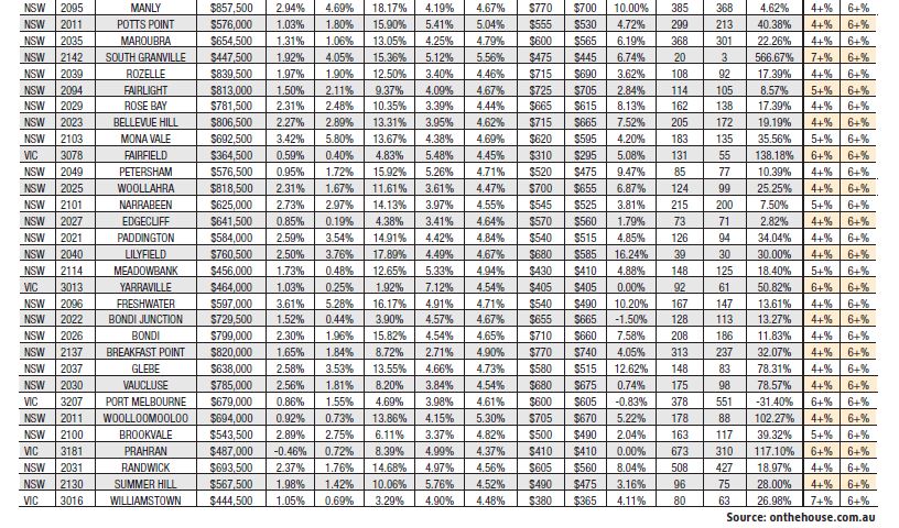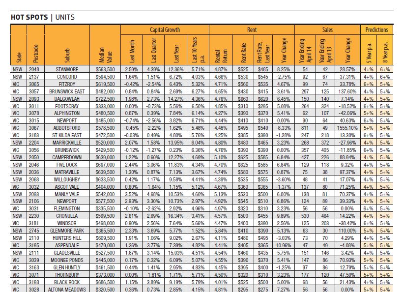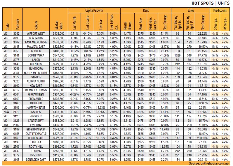 According to the latest Real Estate Investar (www.realestateinvestar.com.au) figures, some unit markets grew nearly 50% during the past 12 months as shown by these tables below.